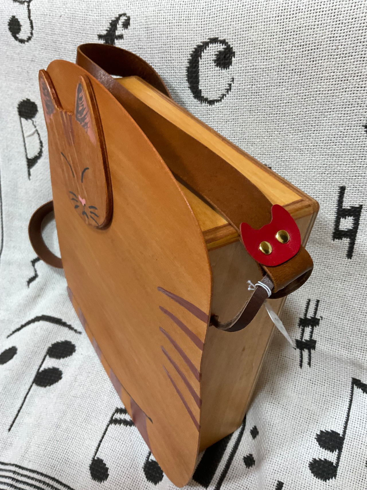 肩紐の両端には赤ニャンコ革!